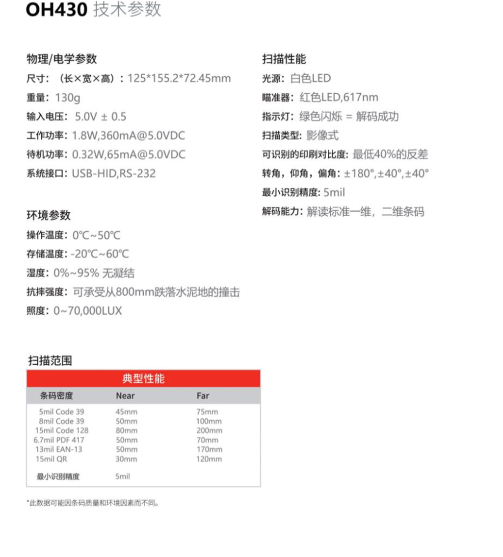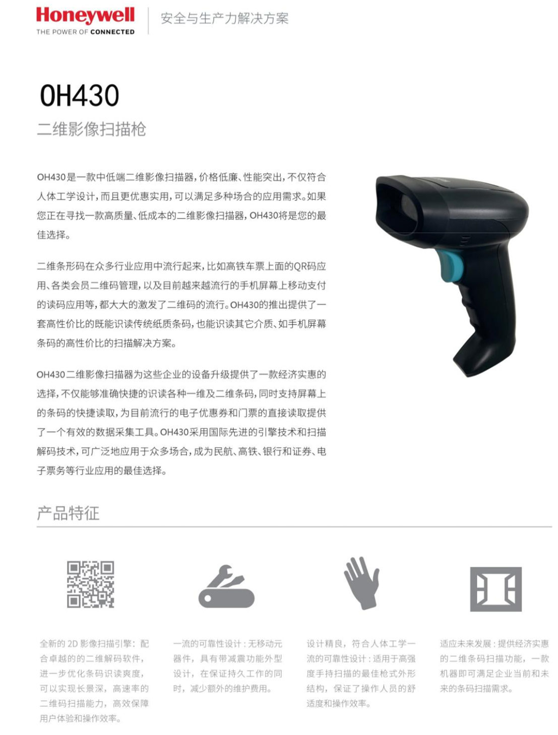 霍尼韋爾oh430二維有線掃描槍