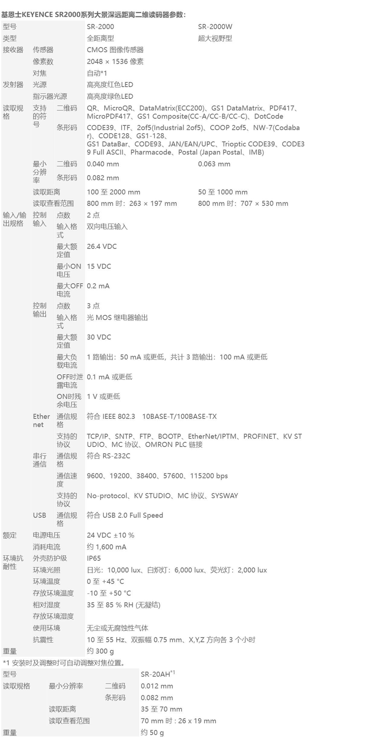 基恩士KEYENCE SR2000系列大景深遠距離二維讀碼器特點: 超大視野